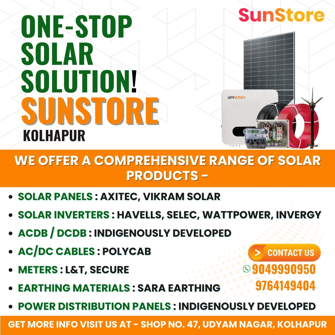 #Sunstore #sunstorekolhapur #solarpanels #solarinstallation #solarenergy #SolarInverter #electrical #solarmodules #SolarPower